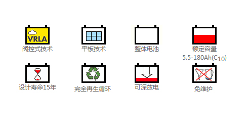 ●浮充设计寿命15年<20Ah 12年),EUROBAT分类:长寿命
