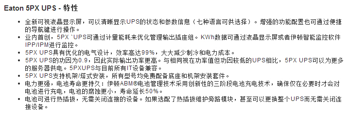 5PX--是一款管理便捷、性能效率出众、可用性高,灵活性强的Eaton UPS。