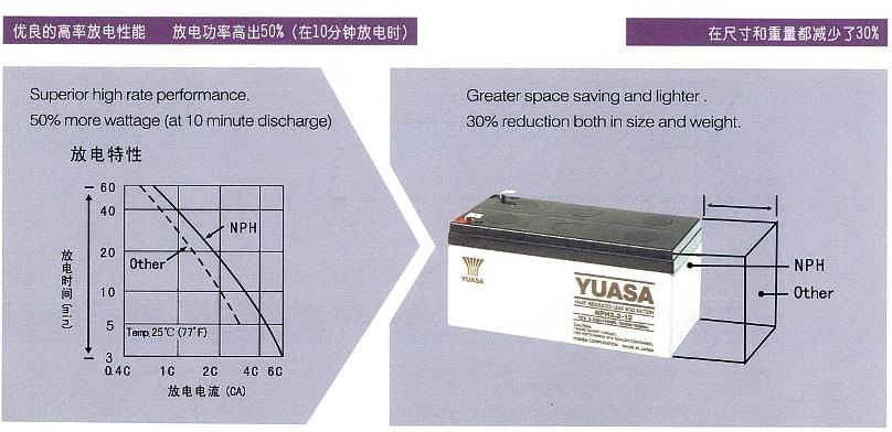 NPH系列是专为满足高率放电需求而设计的。与普通的NP型号电池相比,NPH系列的大电流放电功率高出50%。